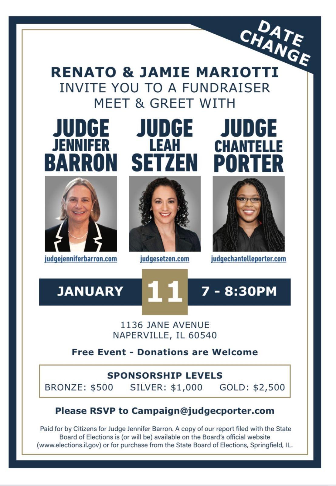 Join Renato and Jamie Mariotti for an exclusive meet and greet event with Judge Chantelle Porter, Judge Jennifer Barron, and Judge Leah Setzen!